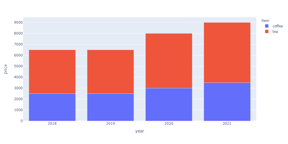 출력된 그래프를 보면, 연도별 coffee와 tea의 price 변화를 확인할 수 있습니다.