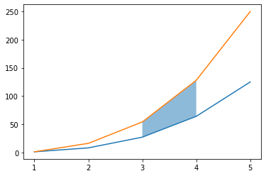 plt.fill_between(x[2:4], y1[2:4], y2[2:4], alpha=0.5)