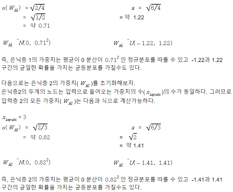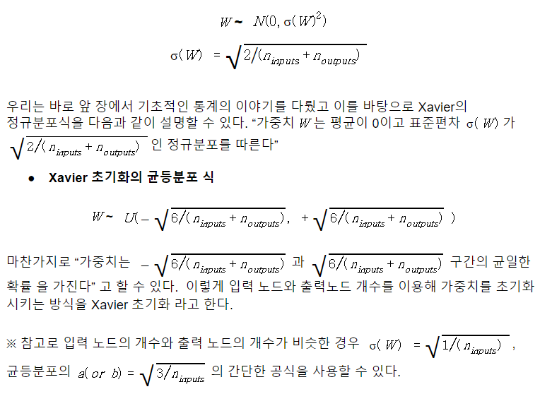 >> Xavier 초기화의 정규분포 식