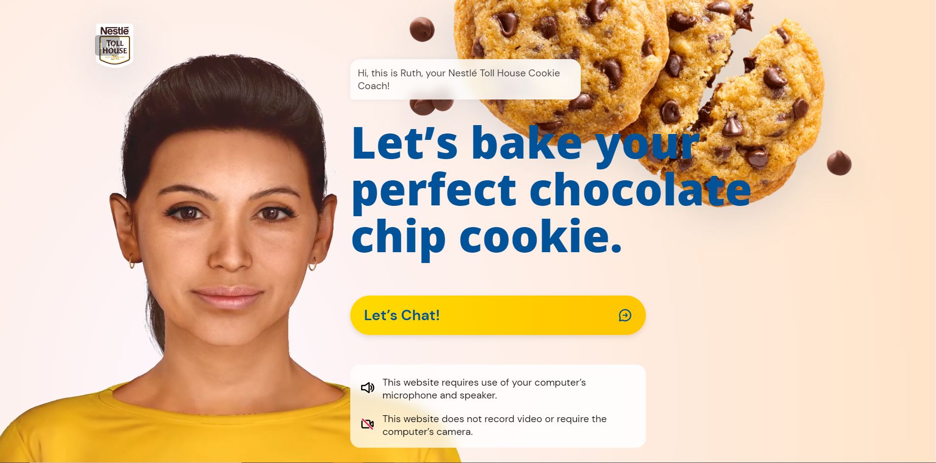 NESTLÉ® TOLL HOUSE® introduces Ruth the COOKIE COACH™ assistant to deliver interactive baking experiences for new and experienced bakers to make the ultimate chocolate chip cookie We are excited to introduce Ruth, the COOKIE COACH assistant from NESTL