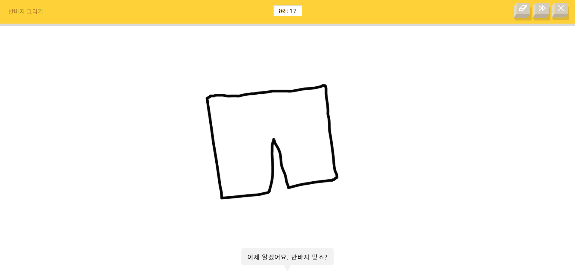 그러면 바로 이렇게 문제가 뜨는데요, 첫 문제는 '반바지'를 20초 안에 그리라고 하네요