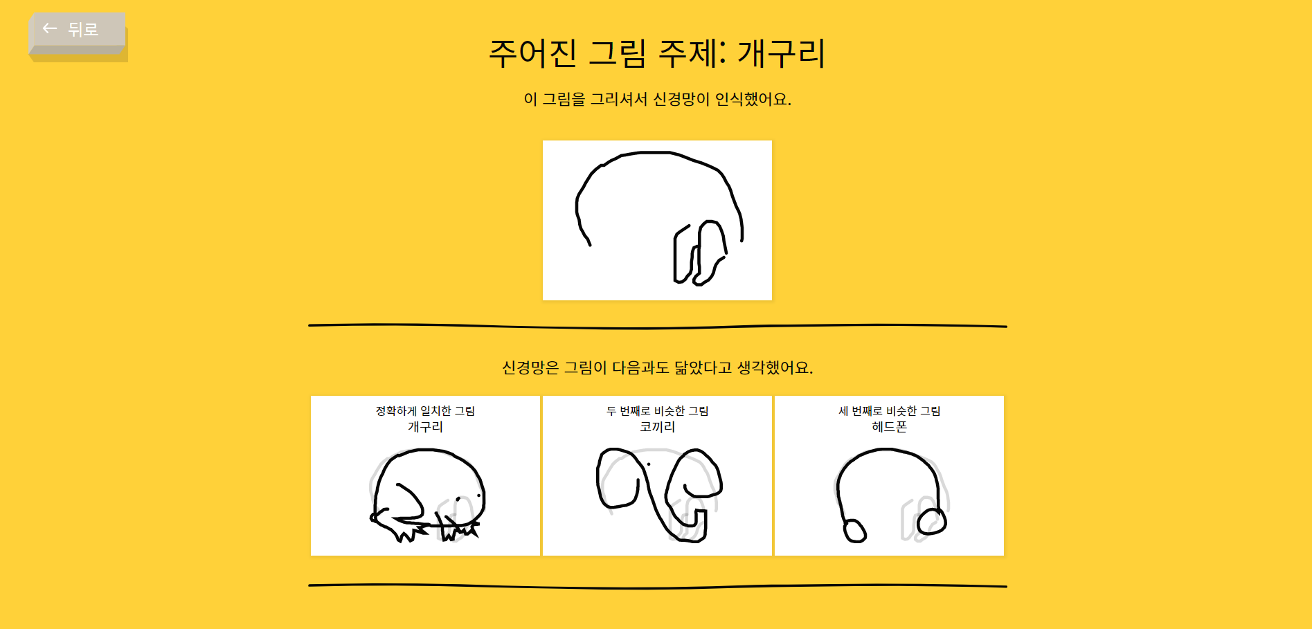 그렸던 그림을 선택하면 아래와 같이 제시어에 대해 인공지능이 유추했던 단어,
