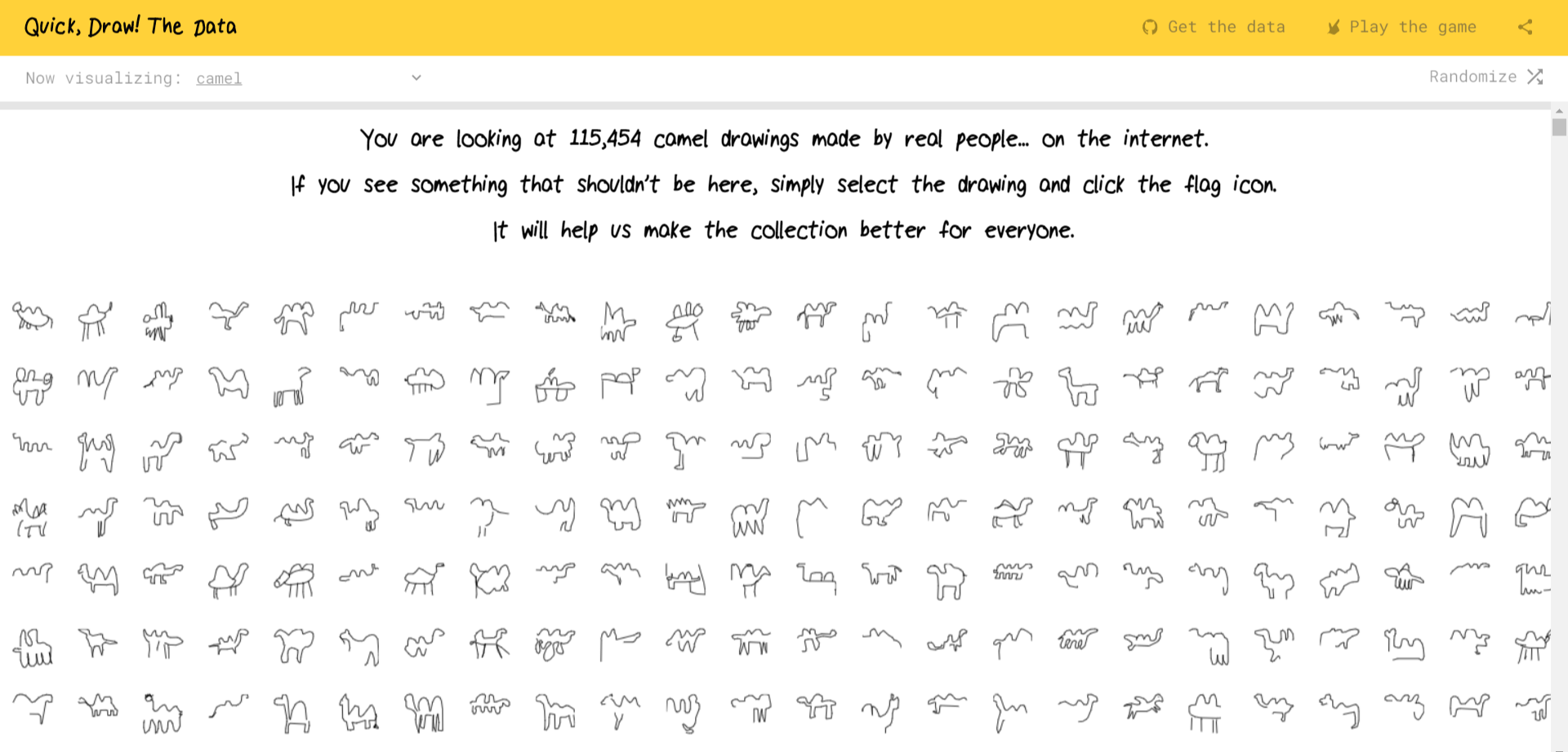 '세계 최대의 낙서 데이터 세트'라는 글자를 클릭하면