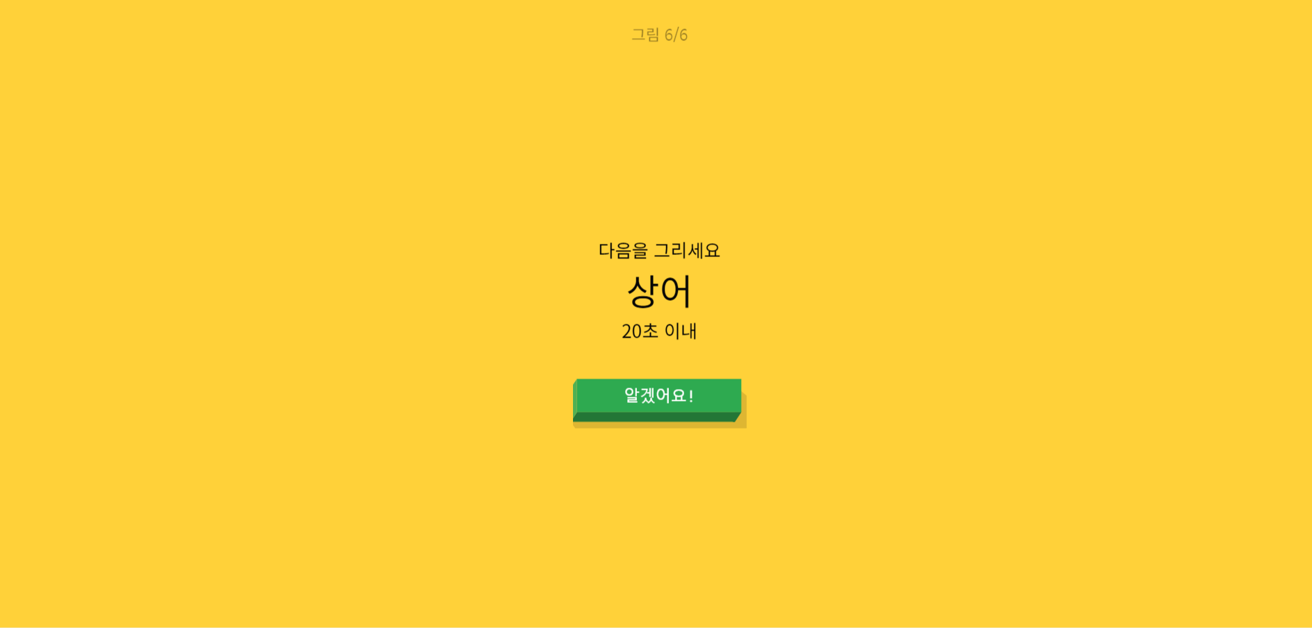 '트럭' ,'상어' 제시어까지 모두 6개의 그림을 그리면 게임이 끝납니다!