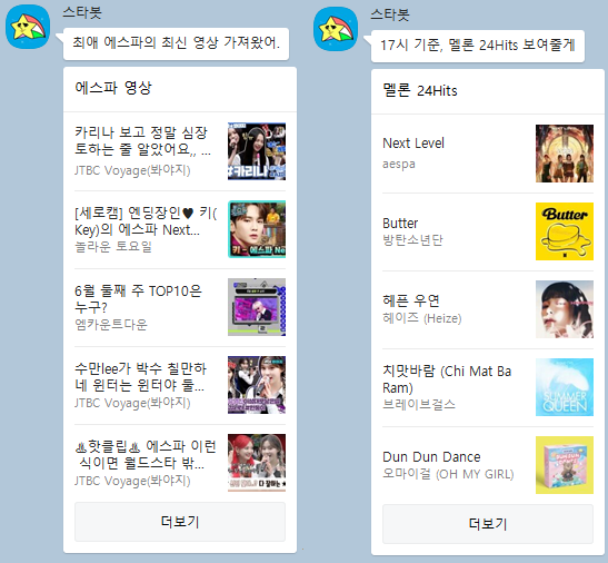 팬카페, V-LIVE, 유튜브 등 이곳저곳을 돌아다니느라 지친 분들에게 스타봇으로 조금은 쉽게 덕질을 할 수 있지 않을까 생각해봅니다. 인공지능으로 할 수 있는 것들이 정말 많습니다. 누가 카카오톡 챗봇으로 음원 스트리밍부터 방송 클립, 관련 뉴스까지 볼 수 있을 줄 알았나요?