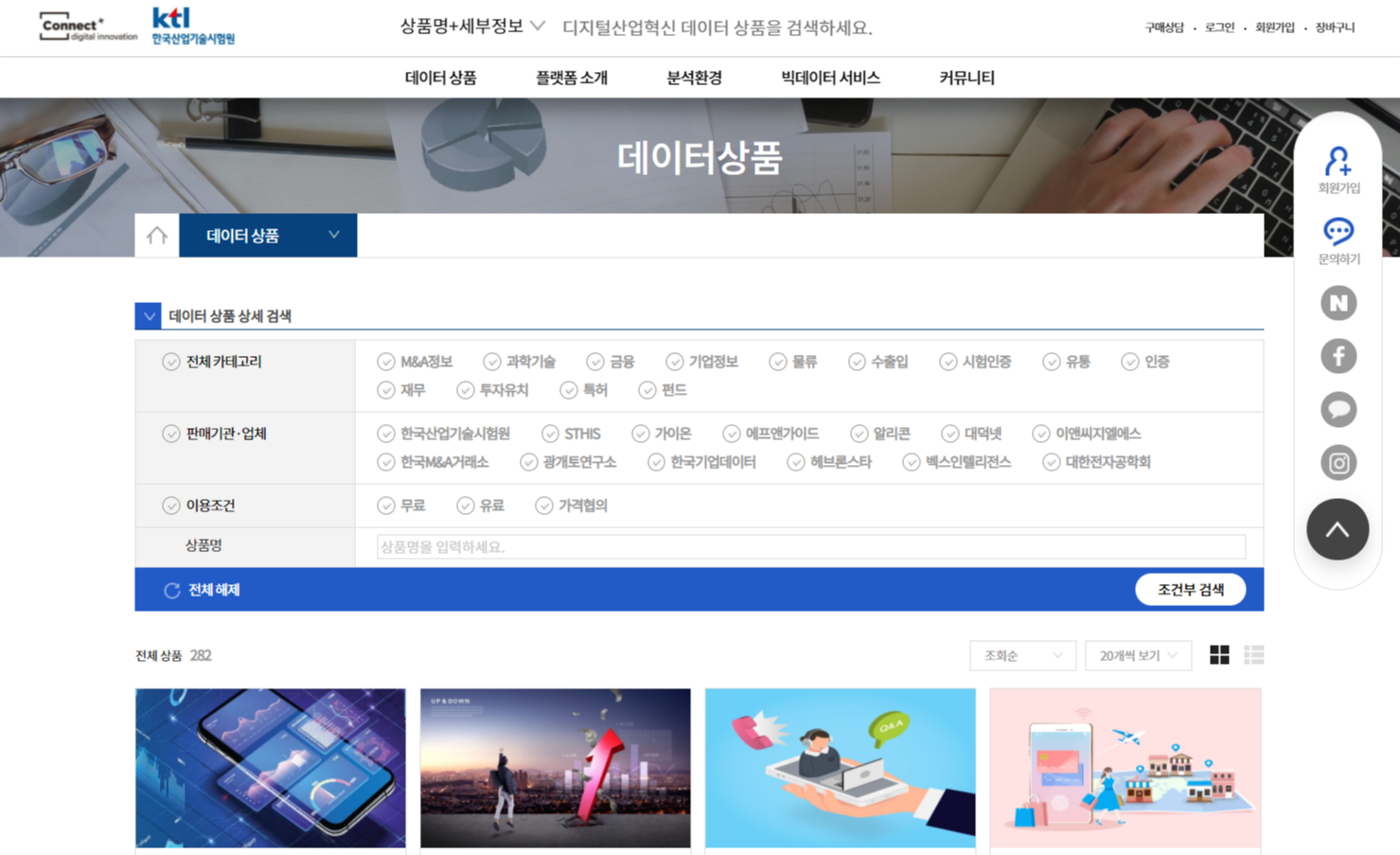 이번 데이터 리뷰기에서 소개한 데이터는 '디지털 산업혁신 빅데이터 플랫폼'에서 받은 데이터인데요, 디지털 산업혁신 빅데이터 플랫폼은 디지털 & 산업혁신과 관련한 데이터를 제공하는 플랫폼입니다. 구체적인 카테고리로는 M&A 정보, 과학기술, 금융, 기업정보, 물류, 수출입, 재무, 투자유치, 특허, 펀드 등이 있고 현재 약 280개 이상의 데이터를 무료 또는 유료로 제공하고 있답니다.