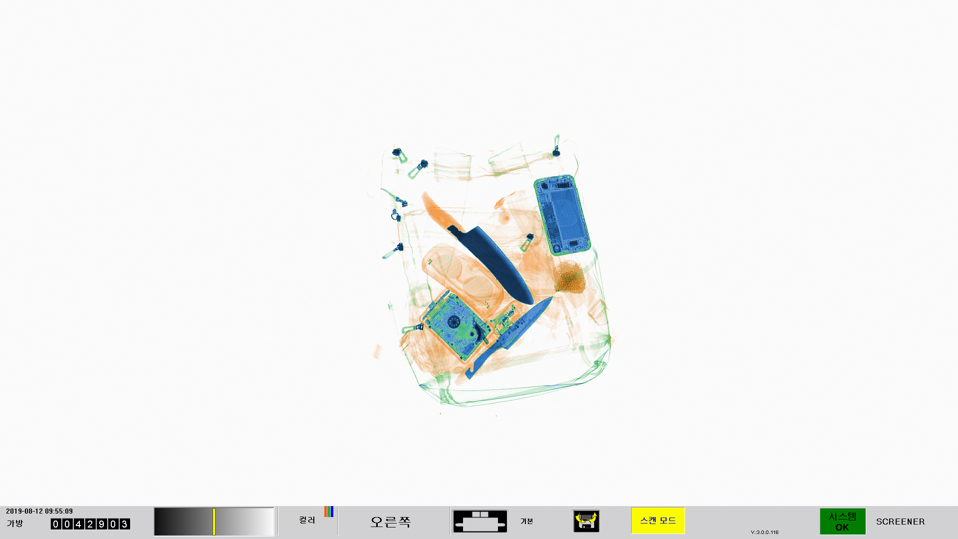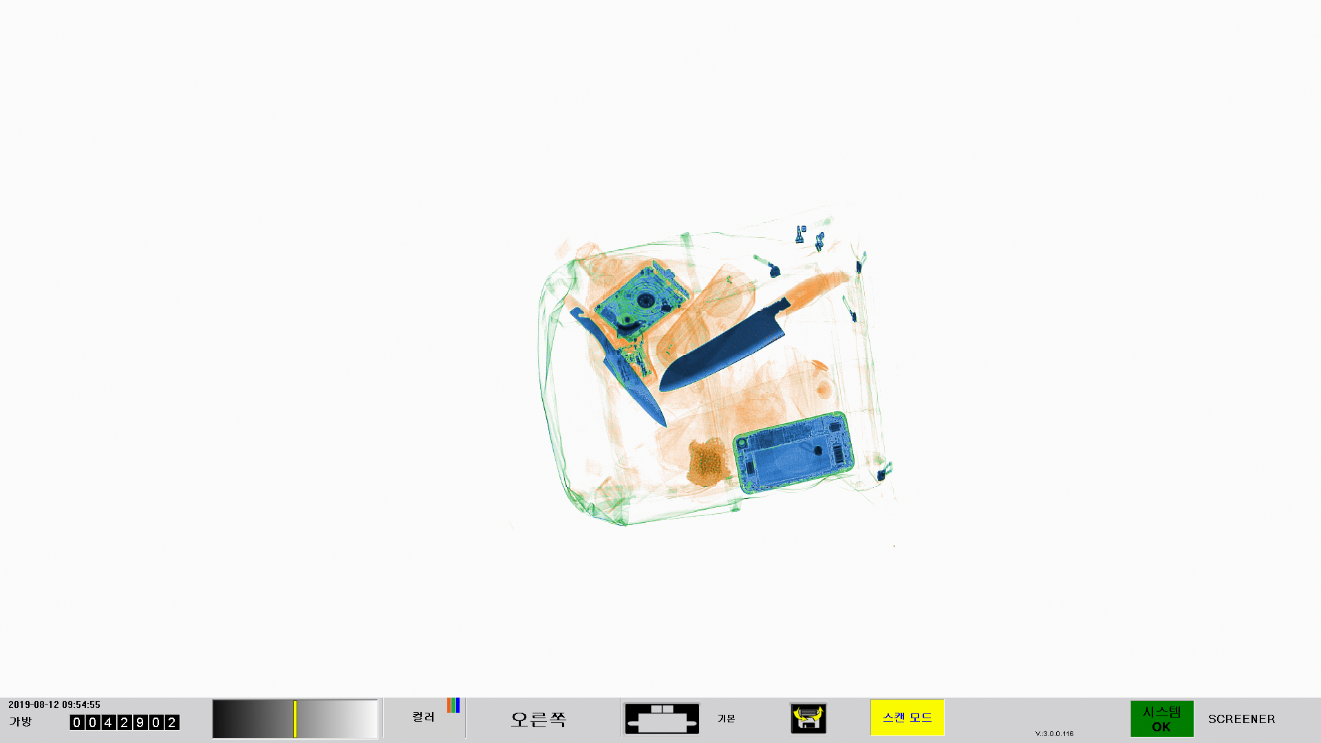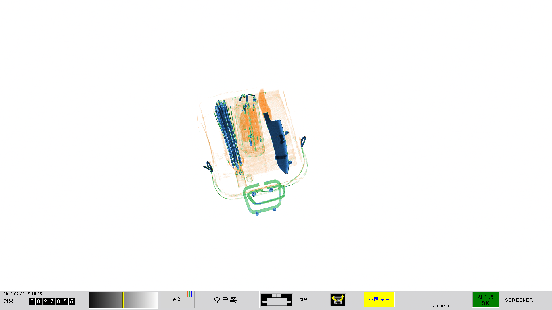 마지막으로 단일 비품목 이미지는 해당 품목의 샘플 1개와 다른 위해 물품 없이 일반 품목을 동시에 넣고 생성된 이미지로, 여러 물품 중 딱 1개의 위해물품인 칼이 있는 것을 위 이미지에서 확인할 수 있습니다.