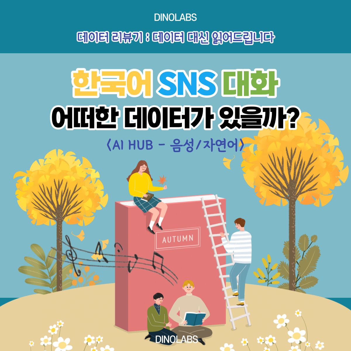 이와 관련해서 AIHUB에서는 한국어 구어체 텍스트 기반의 자연어처리 AI 기술 개발을 목적으로 한국인의 일상 대화 메신저 채팅 데이터를 구축한 '한국어 SNS 대화' 데이터를 제공하고 있습니다. 따라서 이번 데이터 리뷰기에서는 이 데이터가 어떻게 이루어져 있는지 살펴보고, 어떻게 분석 및 활용하면 좋을지 생각해보도록 하겠습니다!