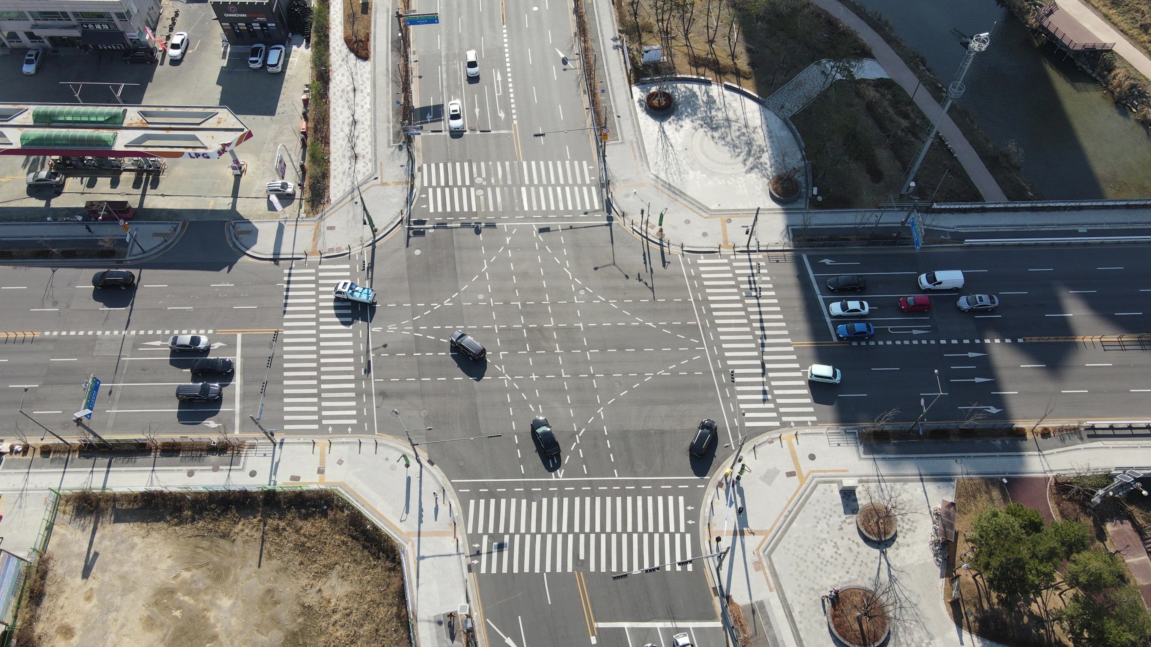 위 이미지는 경기 하남시 망월동에 있는 4거리 교차로로 드론이 해당 도로를 고정시킨 뒤 촬영한 이미지입니다. 2개의 이미지만 보여드렸지만 데이터 폴더를 확인해보면 동일한 장소에서 시간 단위로 촬영된 이미지가 약 200개가 있는 것을 확인할 수 있답니다.