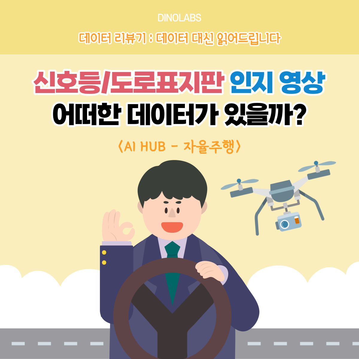 이와 관련하여 AIHUB 플랫폼에서는 '신호등/도로표지판 인지 영상' 데이터를 제공하고 있는데요, 신호등, 도로 표지판 등 객체 인지를 위한 광역시, 고속도로, 국도 주행 영상 및 이미지 데이터로 구축된 데이터셋입니다. 그렇다면, 오늘 데이터 리뷰기에서는 이 데이터가 어떻게 이루어져 있는지 살펴보고, 어떻게 분석 및 활용하면 좋을지 생각해보도록 하겠습니다!