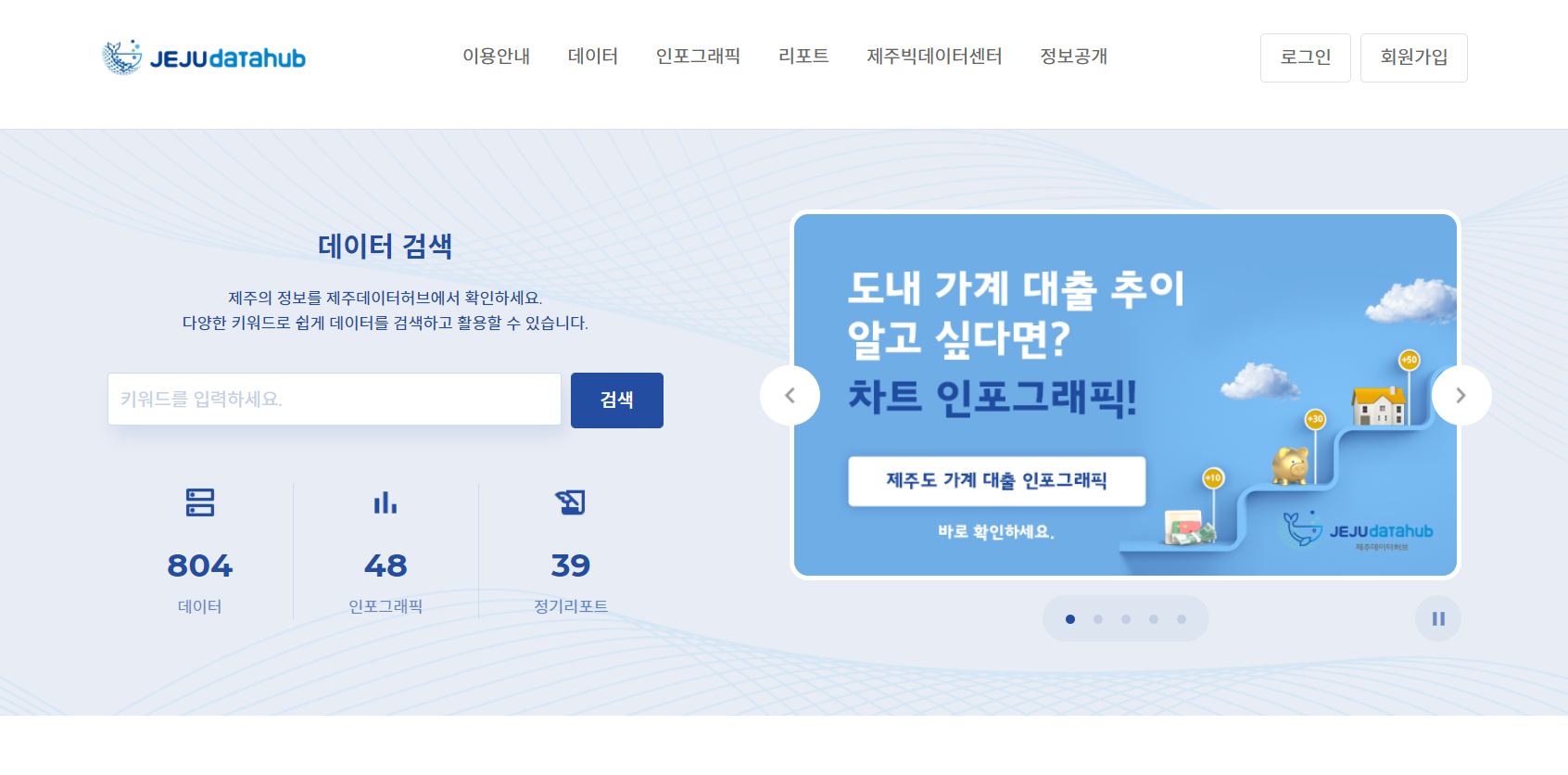 오늘 리뷰한 '제주 국가별 외국인 방문' 데이터는 <제주 데이터 허브>에서 다운로드 받은 데이터로, 제주 데이터 허브 플랫폼은 '사용자 참여형 플랫폼'으로 제주특별자치도, 기업, 개인이 보유한 데이터를 자유롭게 공유할 수 있는 데이터 창구입니다. 또한 공공데이터와 민간데이터의 융합 구축을 통해 선순환 데이터 활용 생태계를 조성하고자 구축된 플랫폼입니다!