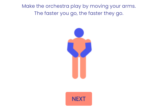팔을 움직여 오케스트라를 연주할 수 있고, 팔을 더 빠르게 움직일 수록 템포를 빠르게 할 수 있습니다.