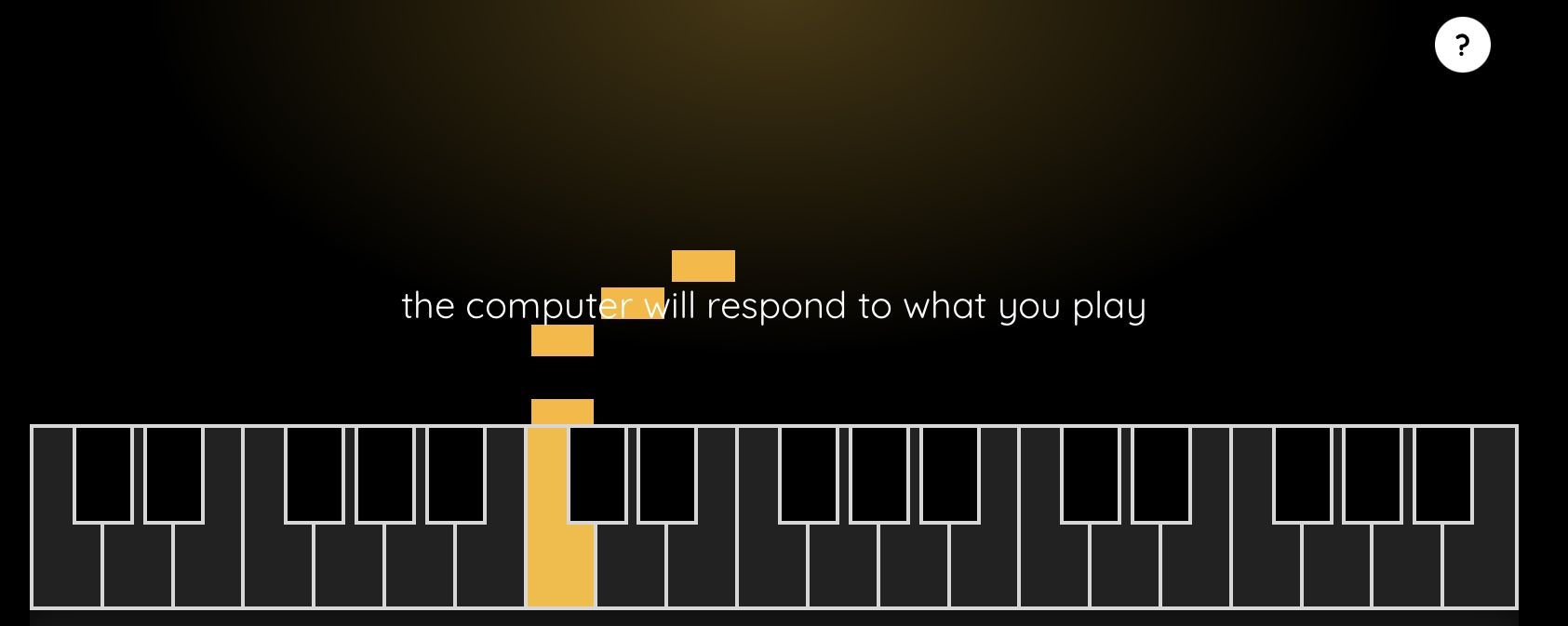 음표 몇 개를 틀기만 하면 컴퓨터가 나의 멜로디에 반응하고, 피아노 칠 줄도 모르셔도 돼요. 그냥 건반을 몇 개 누르고 무슨 소리가 나는지 듣는 게 재미있습니다 :D