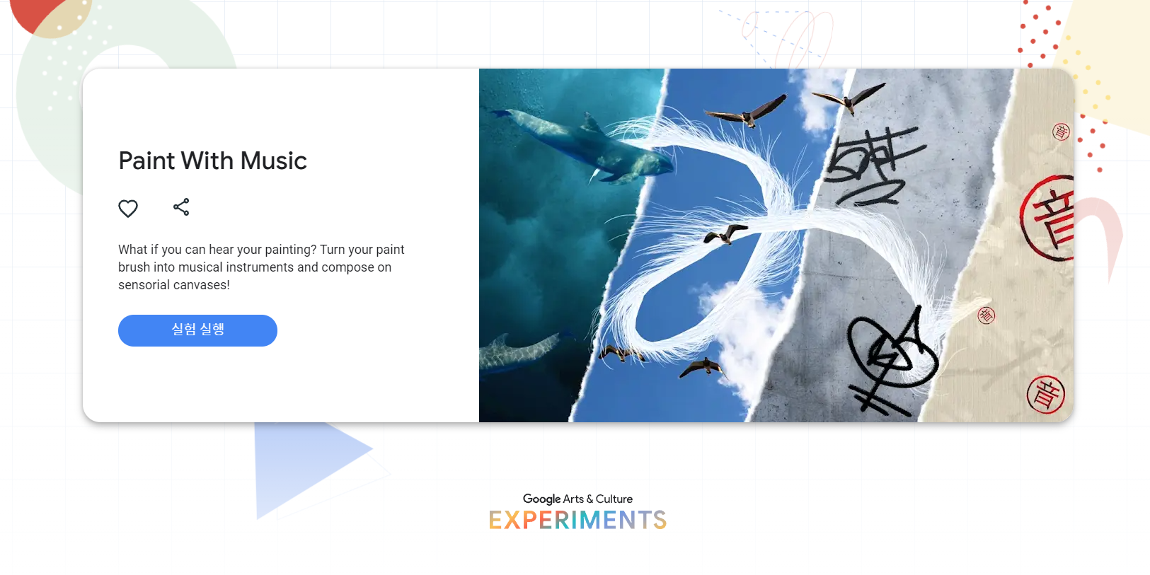 구글 아트앤컬쳐에서 만든 "Paint with Music"인데요, 말 그대로 음악과 함께 그리는 그림으로