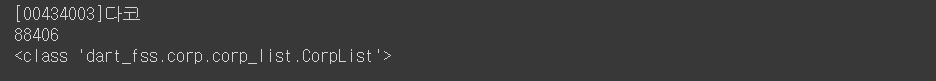 즉, corp_list.함수의 형태로 몇 가지 함수를 사용할 수 있습니다.