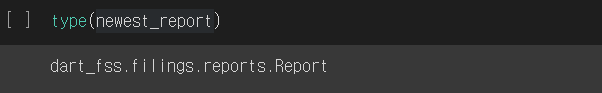 newest_report 변수는 dart_fss.filings.reports.Report 클래스의 인스턴스(객체)로서 메소드(기능)를 사용할 수 있습니다.