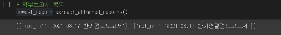 첨부파일 목록을 불러오는 extract_attached_files() 메서드, 첨부보고서 목록을 불러오는 extract_attached_reports() 메서드 등이 있습니다..