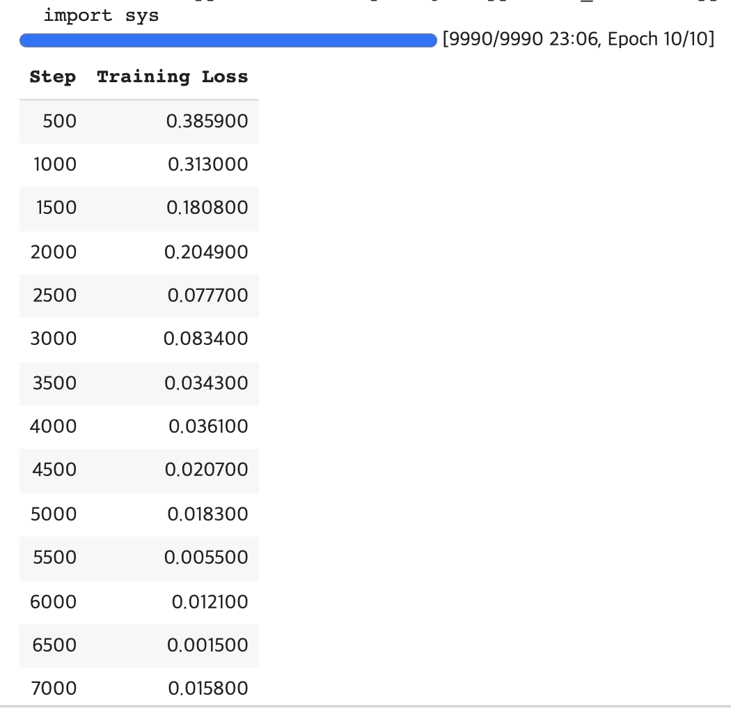 TrainingArguments에 입력한 조건에 맞춰 손쉽게 모델을 학습하고 학습결과를 저장하는 것을 확인할 수 있다.