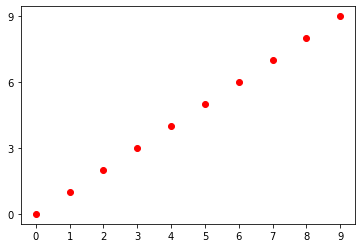plt.plot(a,a,'ro')