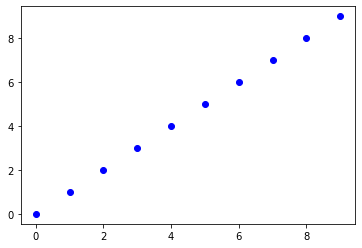 plt.plot(a,a,'bo')
