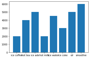 item = ['ice coffee', 'hot tea', 'ice ade', 'hot milk', 'ice water', 'ice coke', 'oil', 'smoothie']