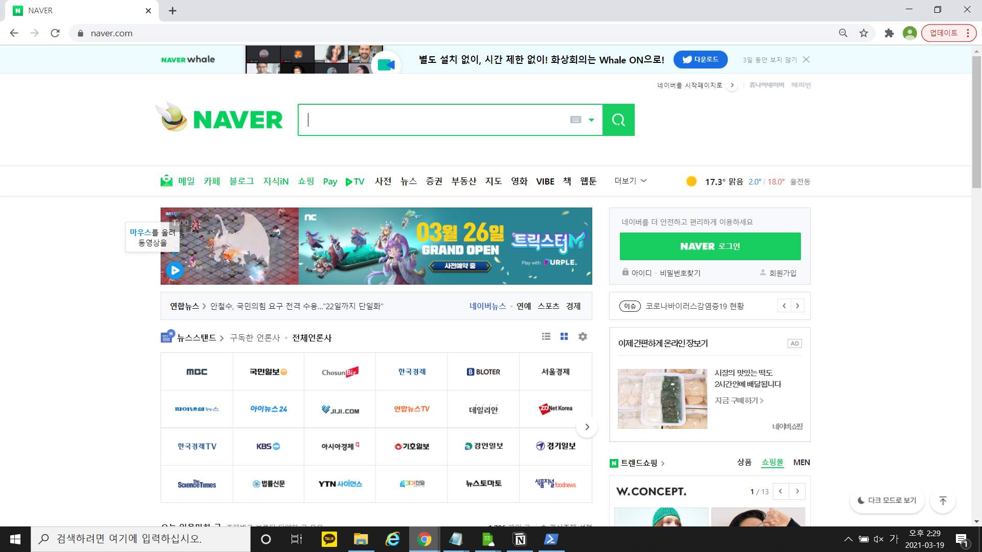 먼저, 아래 코드는 selenium과 크롬 드라이버를 이용하여 네이버 홈페이지를 여는 코드입니다.