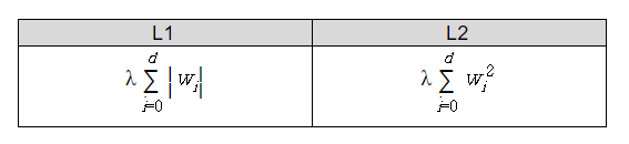 정확하게 말하면 규제화(regularization)는 일부 미지수의 값을 아주 작게 만들어 그 영향을 줄임으로써 마치 미지수의 개수가 적어진 효과를 가져온다. 가중치 값이 커지는 것을 막는다는 제한, 규제의 의미가 있데 이런 규제화의 종류에는 L1 norm(노름)과 L2 norm이 존재한다. 각 각의 설명을 위해 두 종류를 비교해 보도록 하겠다. 다음의 표에 기재된 수식을 한번 보자.