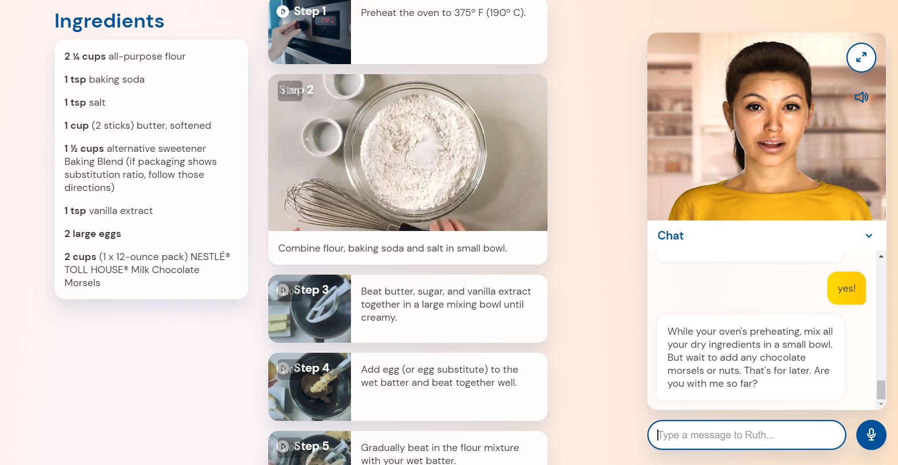 NESTLÉ® TOLL HOUSE® introduces Ruth the COOKIE COACH™ assistant to deliver interactive baking experiences for new and experienced bakers to make the ultimate chocolate chip cookie We are excited to introduce Ruth, the COOKIE COACH assistant from NESTL