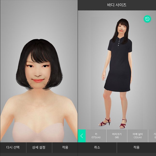 또한, 머리 스타일이나 키, 상체·하체 사이즈를 조정해 자신과 꼭 닮은 아바타를 만들어 보다 실감나는 아바타 피팅을 경험할 수 있습니다.