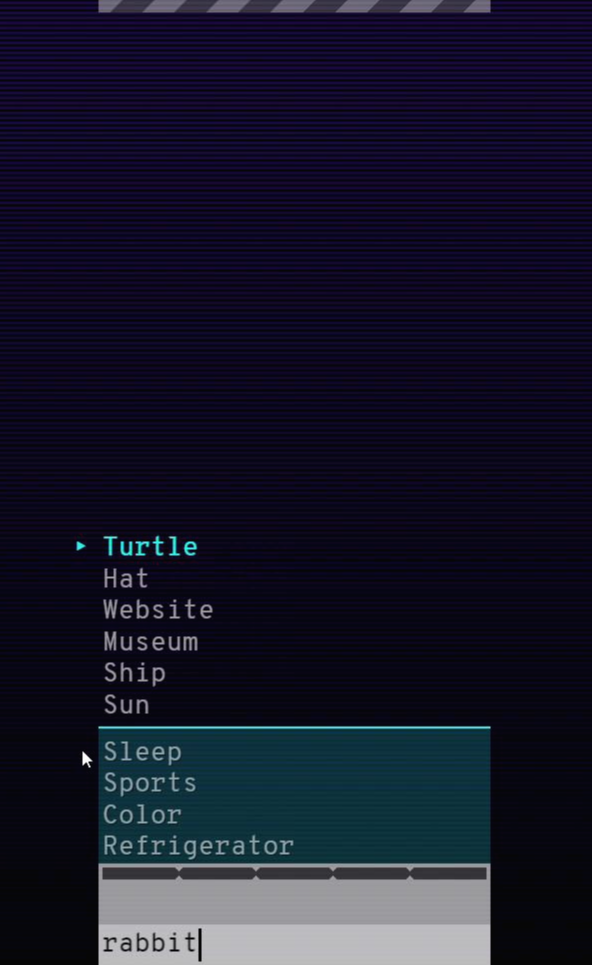 저는 'turtle'을 보고 'rabbit'을 입력했어요.