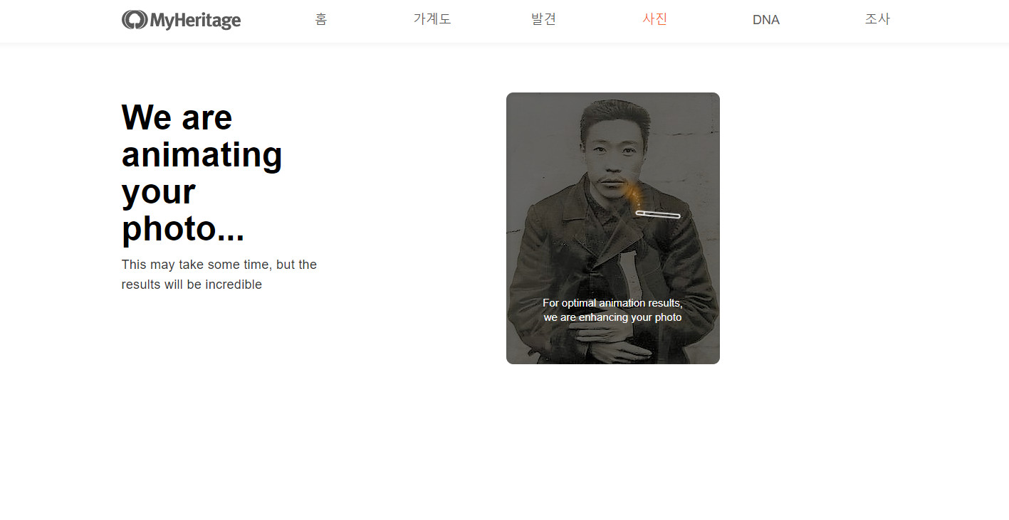 여러분들도 My Heritage에서 그리운 사람의 사진을 생동감 있는 영상으로 바꿔보면 좋을 것 같아요!