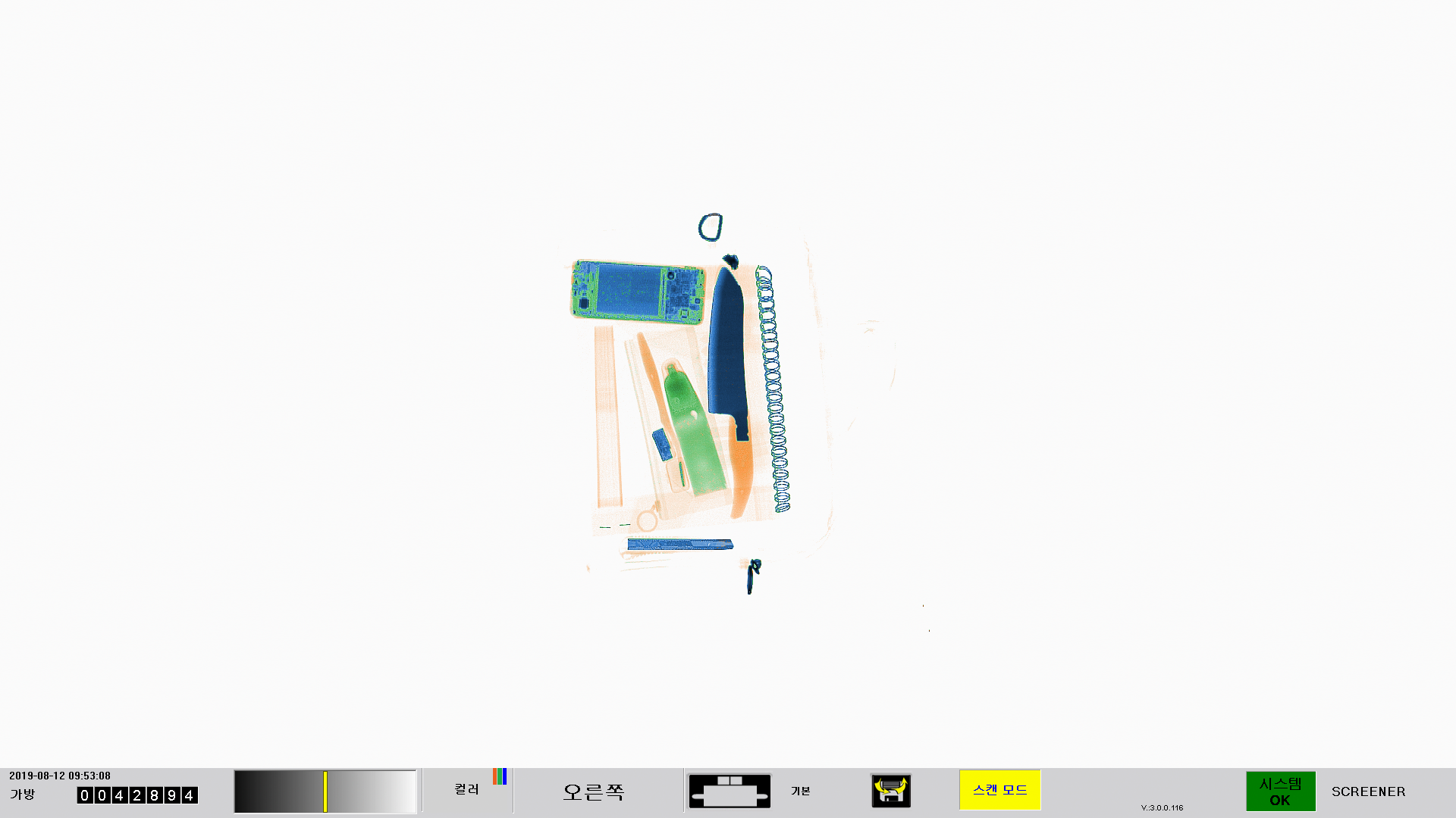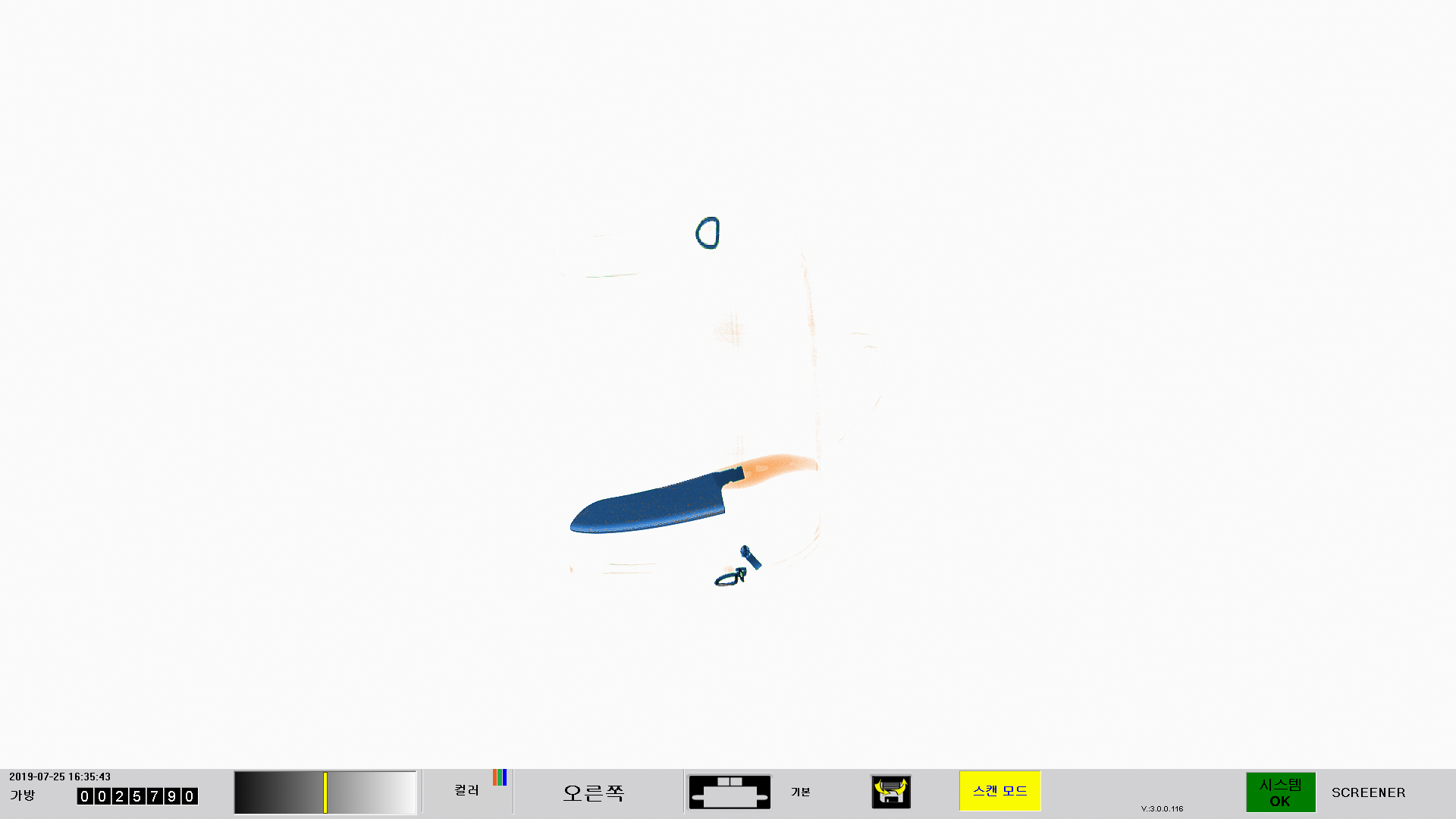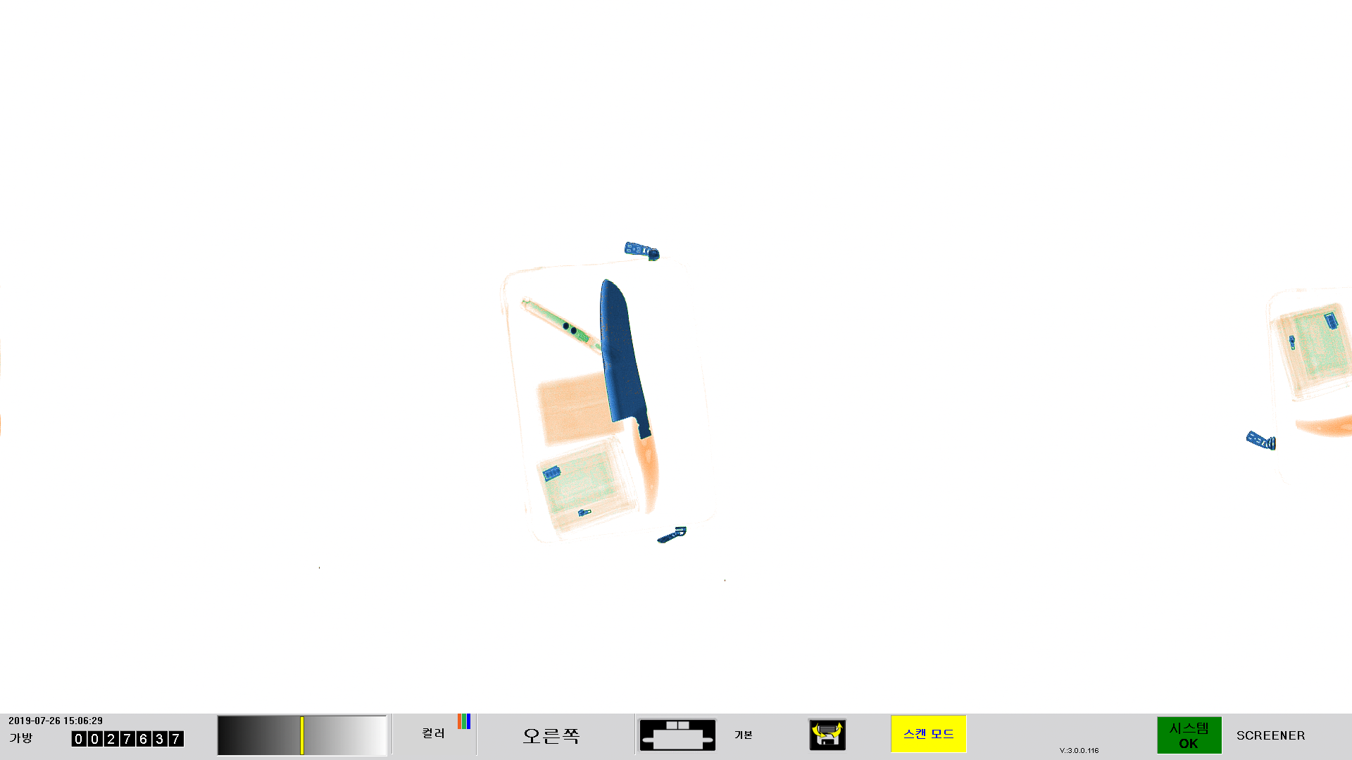 마지막으로 단일 비품목 이미지는 해당 품목의 샘플 1개와 다른 위해 물품 없이 일반 품목을 동시에 넣고 생성된 이미지로, 여러 물품 중 딱 1개의 위해물품인 칼이 있는 것을 위 이미지에서 확인할 수 있습니다.