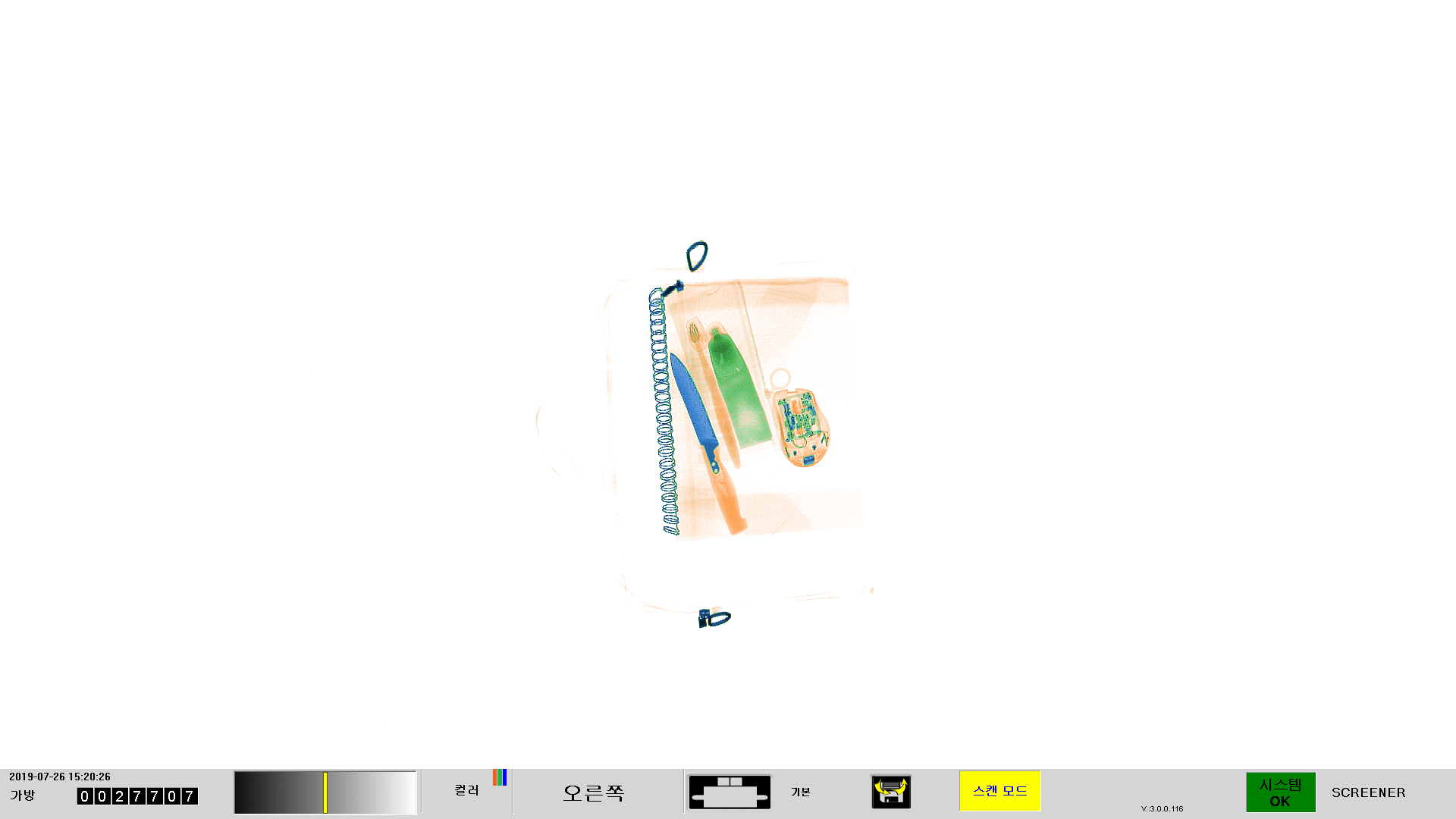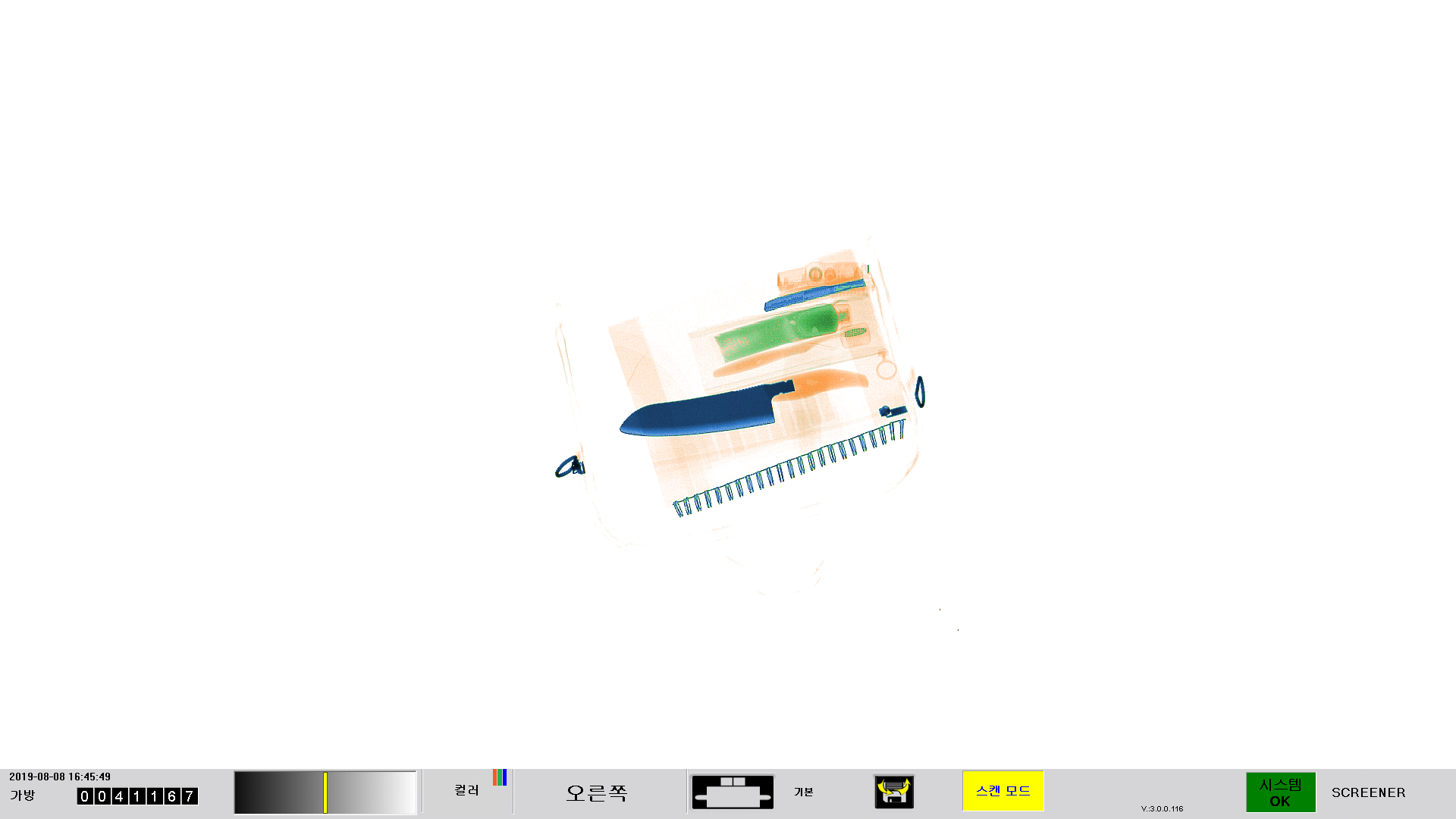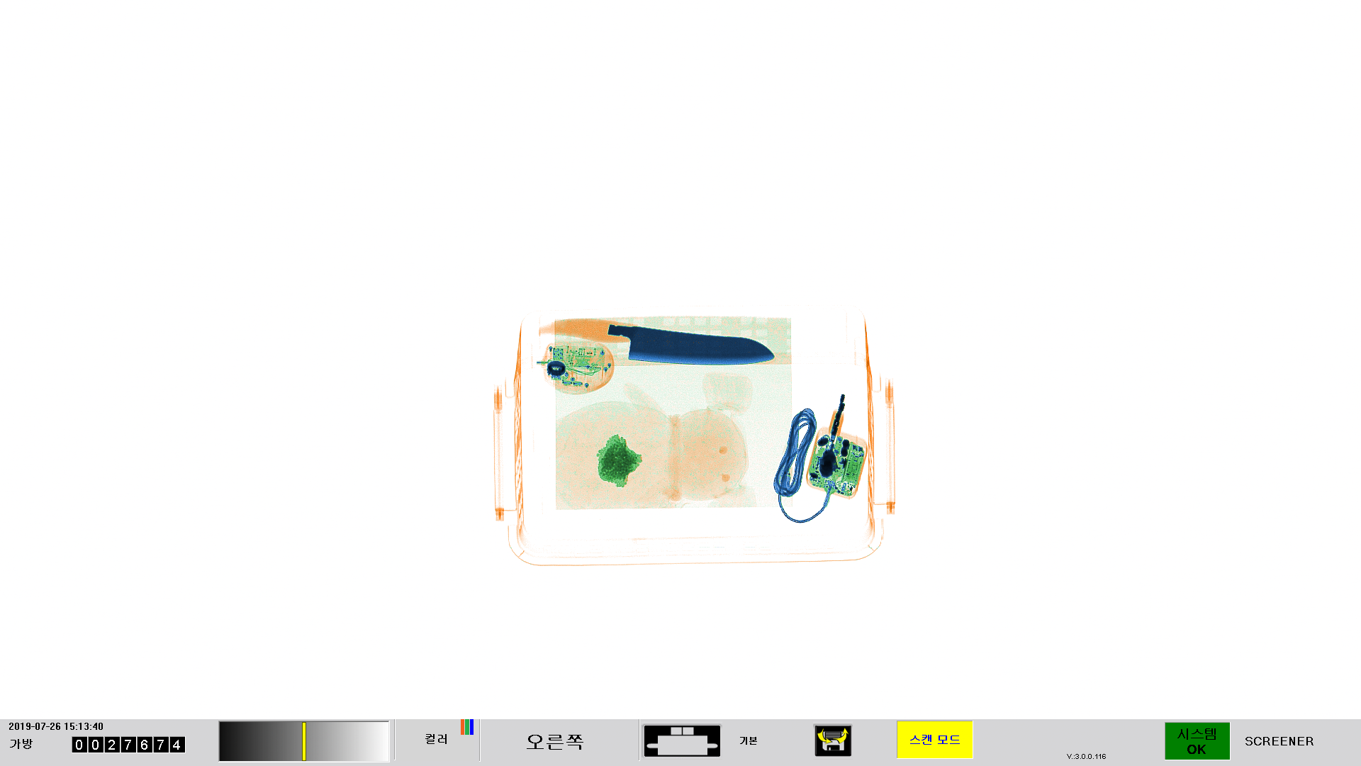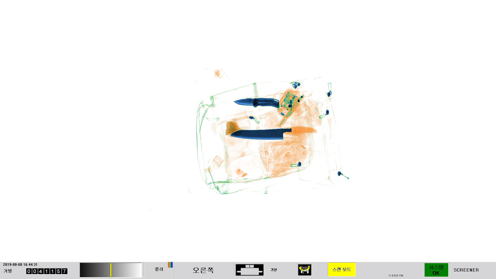 마지막으로 단일 비품목 이미지는 해당 품목의 샘플 1개와 다른 위해 물품 없이 일반 품목을 동시에 넣고 생성된 이미지로, 여러 물품 중 딱 1개의 위해물품인 칼이 있는 것을 위 이미지에서 확인할 수 있습니다.