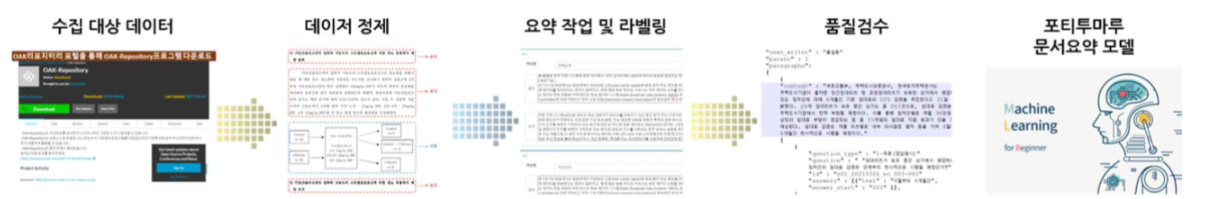 한편, 데이터 구축 과정은 위와 같은데요, 한국연구재단 학술지 인용색인, 특허정보원 키플리스 등에서 18만 건의 학술논문 및 17만 건의 특허 명세서를 수집한 뒤, 요약 작업을 위한 지문을 생성하여 데이터를 정제했다고 합니다. 그리고나서 논문 및 특허 전체 요약을 진행하고, 품질 검수 전담 인력을 통해 직접 검수한 뒤, 데이터셋으로 구축되었다고 합니다.