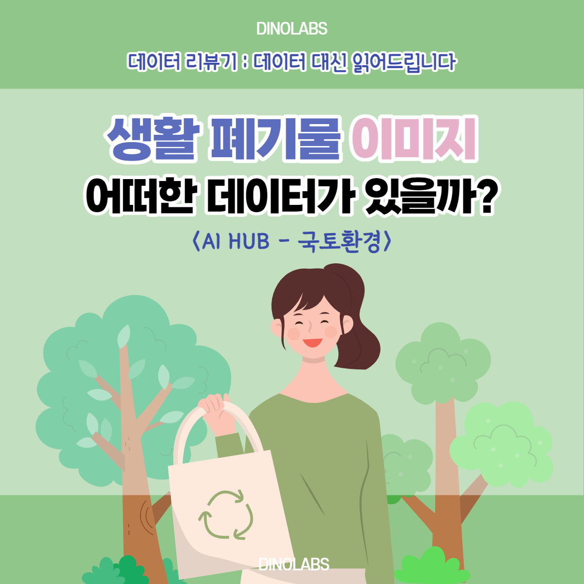 하지만 많은 분들이 각종 생활폐기물에 대해 분리수거 기준을 잘 몰라 잘못 분리수거 하는 일도 있곤 하는데요, 이와 관련해서 AIHUB에서는 폐기물 자원 관리와 효율화를 위해 인공지능 기반 생활 폐기물 탐지 및 분류를 위한 '생활 폐기물 이미지' 데이터를 구축하여 제공하고 있습니다. 따라서 이번 데이터 리뷰기에서는 이 데이터가 어떻게 이루어져 있는지 살펴보고, 어떻게 분석 및 활용하면 좋을지 생각해보도록 하겠습니다!
