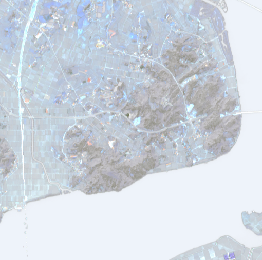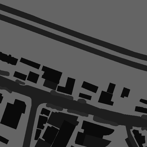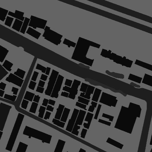 이 데이터는 항공사진(512픽셀)의 피복지도 인데요, 앞서 살펴봤던 원천 데이터의 항공사진(512픽셀)과 동일한 구역임을 확인할 수 있습니다. 해당 지도와 비교해보면 건물과 도로에 따라 색깔이 구분된 것을 확인할 수 있습니다.