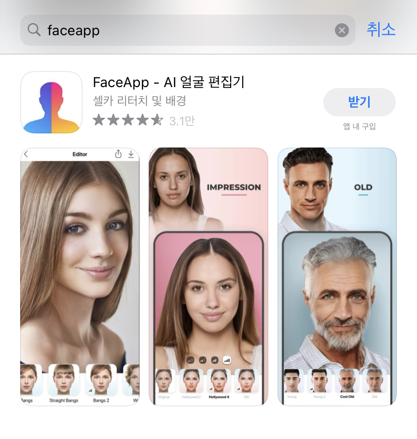 구글플레이어나 앱스토어에 faceapp을 검색 해 설치해줍니다!