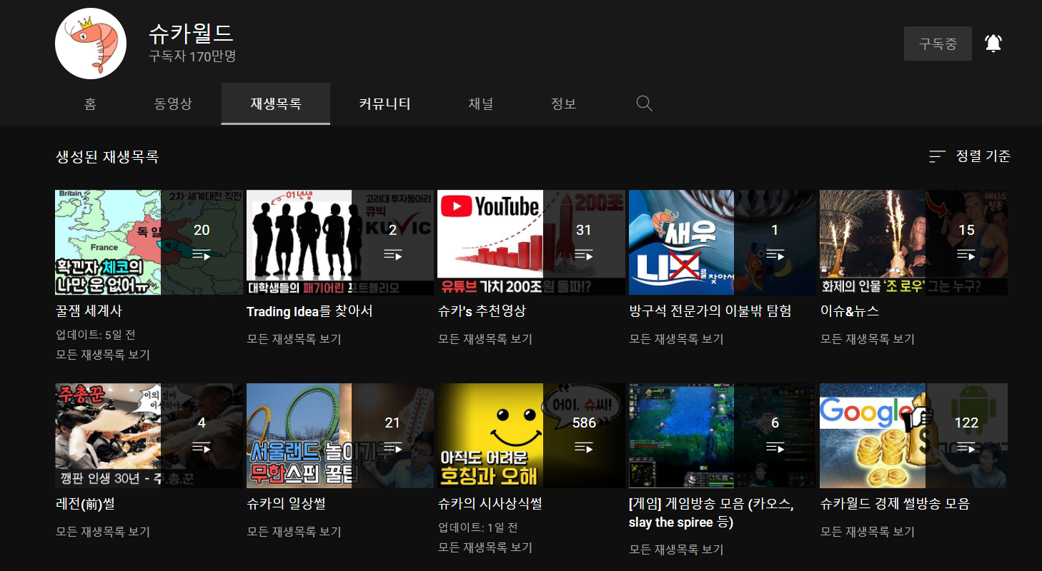 이번에는 "슈카월드" 채널에 있는 재생목록 리스트를 구해볼 건데요.