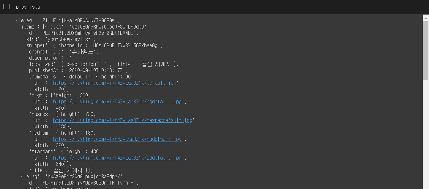 채널에 있는 재생목록 리스트를 가져왔다면 이번에는 재생목록에 있는 동영상 리스트를 가져와볼게요!