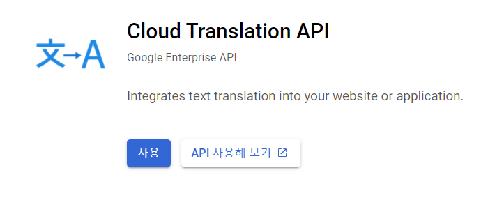 Google Cloud 에서 제공하는 번역 API의 경우 유료버전이므로 Cloud Translation API가 사용 설정된 프로젝트를 생성하여 API 활용 key를 발급받아야 합니다.