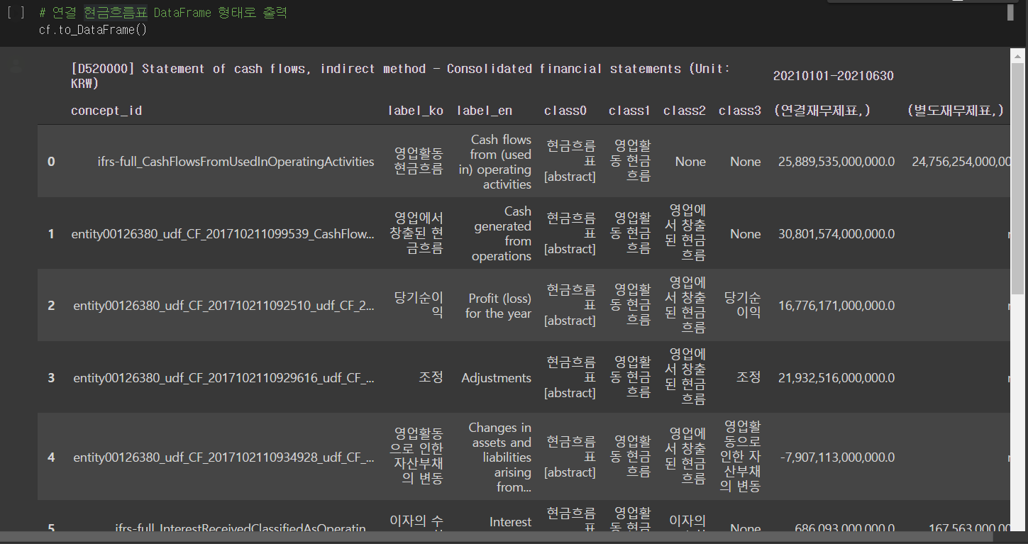 # 연결 현금흐름표 DataFrame 형태로 출력